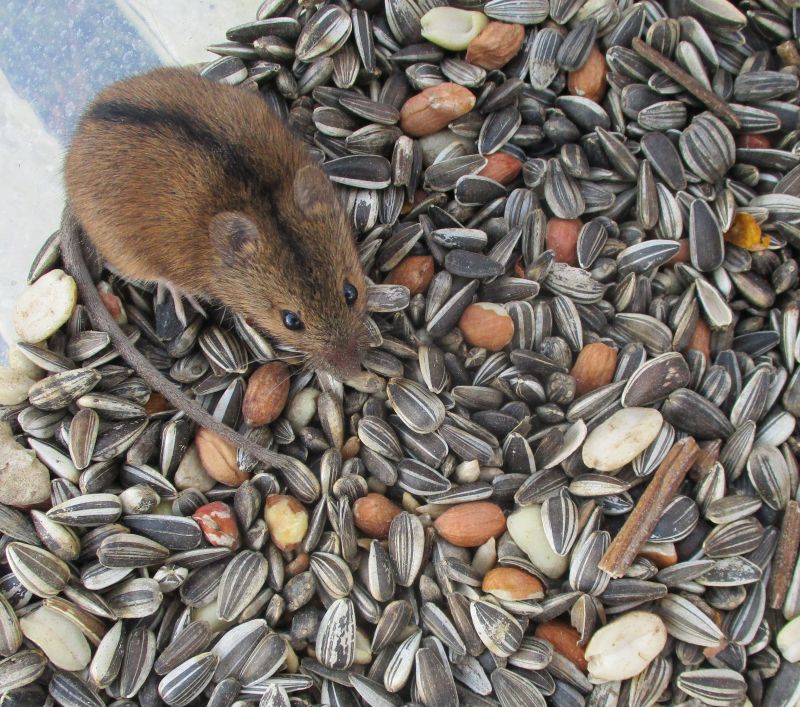 Oben: Die Brandmaus im Vorrat für Vogelfutter Unten: Der Eisvogel hatte sich auf der Terasse verirrt - eingefangen und jetzt wird er frei gelassen